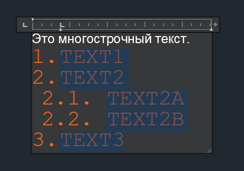 Возможно создание как однострочного, так и многострочного текста. Для простого однострочного текста используется команда ТЕКСТ. Команда МТЕКСТ используется для создания многострочного текстового объекта с более широким набором параметров форматирования.