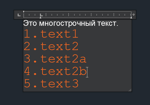 Чтобы добавить новые элементы списка после text2, поместите курсор после text2 и нажмите клавишу ENTER.