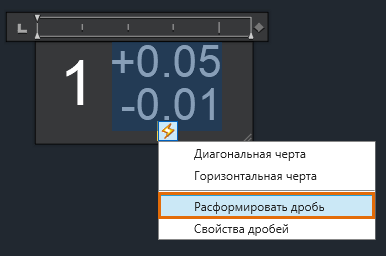 Чтобы создать суммируемые допуски, введите число до и после знака вставки (^). Например, введите 1 +0.05^-0.01 и нажмите пробел.