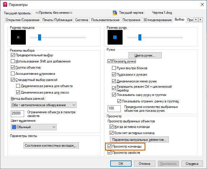 | COMMANDPREVIEW | Управление отображением предварительного просмотра для возможного результата выполнения определенных команд. | 1 | Реестр |