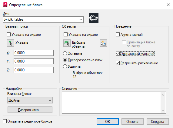Назовите блок, выберите все объекты геометрии и нажмите кнопку «ОК».