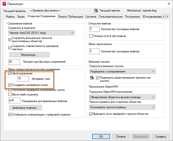 Резервное копирование и автоматическое сохранение чертежей