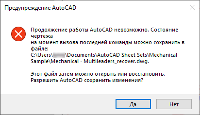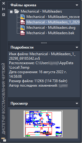 Восстановление чертежей после неожиданного закрытия