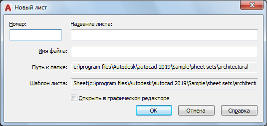 Создание нового листа в текущей подшивке. При этом создается новый файл чертежа (DWG), включающий в себя вкладку-лист с тем же именем, что и сам чертеж.