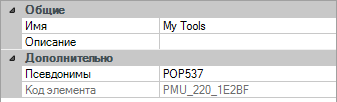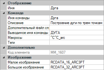 - В разделе "Отображение" панели "Свойства" измените требуемым образом значения свойства "Имя" (не "Имя команды" или "Выводимое имя команды").