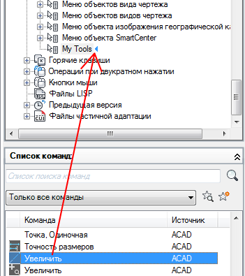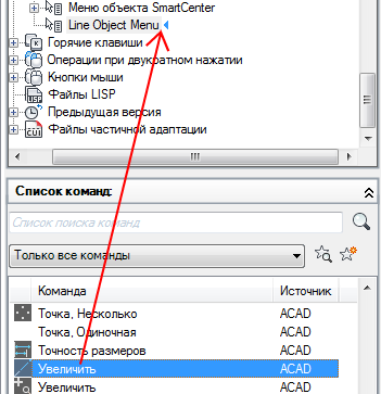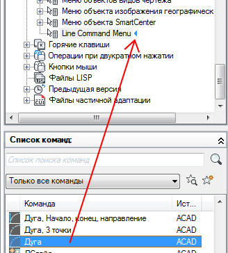 Чтобы вставлять параметры меню, относящиеся к активной команде в контекстном меню, необходимо использовать псевдоним COMMAND_имя_команды. Текст имя_команды может являться именем любой команды. Например, если требуется отображать опции меню в контекстном меню при работе с командой ОТРЕЗОК, можно использовать псевдоним СТРОКА_ОТРЕЗОК.