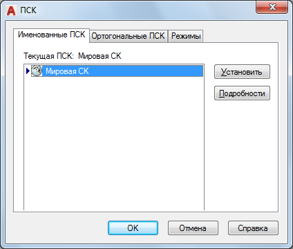 Список ПСК, заданных в текущем чертеже. ПСК, установленная в качестве текущей, помечается в списке указателем.