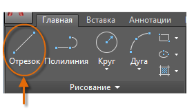 Линия является наиболее простым и часто используемым объектом в чертежах AutoCAD. Для создания отрезка щелкните инструмент "Отрезок".