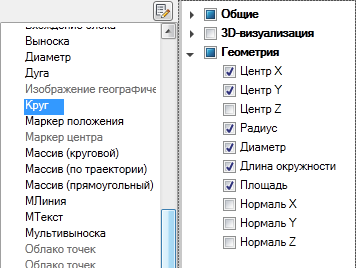 Если рядом с типом объектов установлен флажок, свойства объектов этого типа отображаются в палитре "Быстрые свойства" при выборе объекта этого типа, установке для системной переменной QPMODE значения 2 и включении переменной PICKFIRST. Чтобы удалить выбранный тип объектов из палитры "Быстрые свойства", снимите флажок рядом с ним.