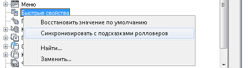 Восстановление используемых по умолчанию параметров быстрых свойств