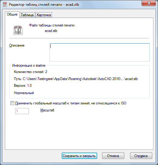 Содержит имя файла таблицы стилей печати, ее текстовое описание, номер версии, местоположение (путь к файлу) и тип таблицы.