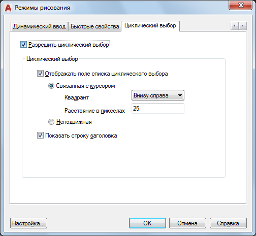 Управление включением элемента циклического перебора (системная переменная SELECTIONCYCLING).