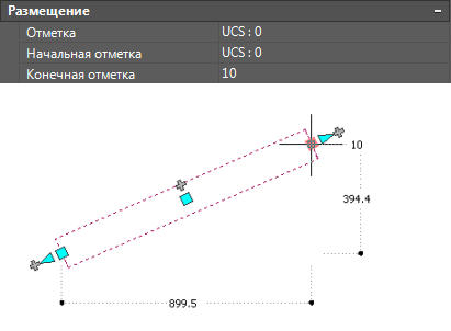 Задает отметку в начальной и конечной точках сегмента воздуховода. ![]() Начальная и конечная отметки в палитре свойств |