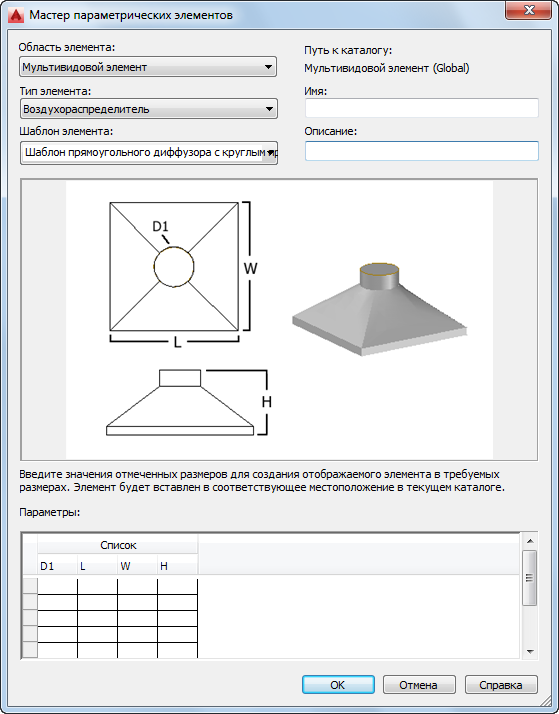 Создание параметрического элемента с помощью Мастера параметрических элементов