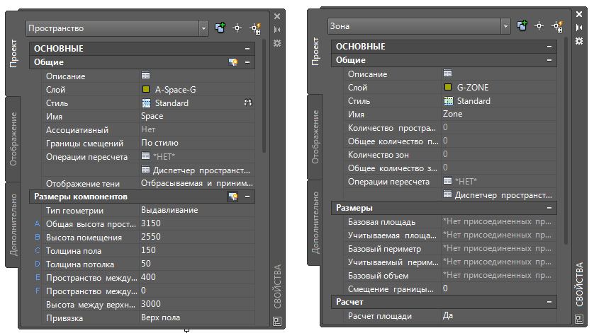 Результаты расчета для пространств отображаются в разделе "РасчетныеДанныеПроектированияПространства", а для зон — в разделе "РасчетныеДанныеПроектированияЗоны".