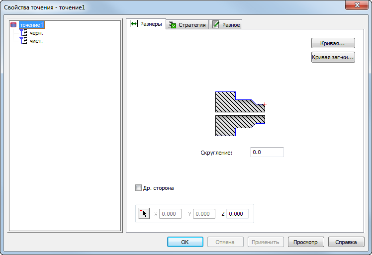 Используйте вкладку Размеры, чтобы редактировать размеры элемента Точение.