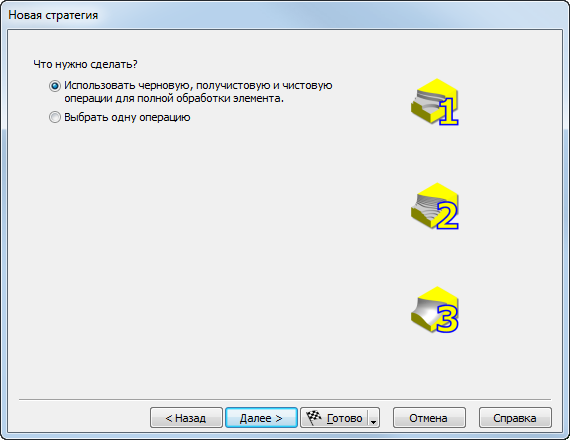 Используйте страницу Новая стратегия мастера Новый элемент, чтобы задать стратегию обработки для создаваемого 3D элемента Обработка поверхности.