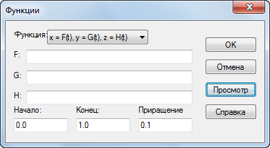 В списке Функция выберите x = F(t), y = G(t), z = H(t).