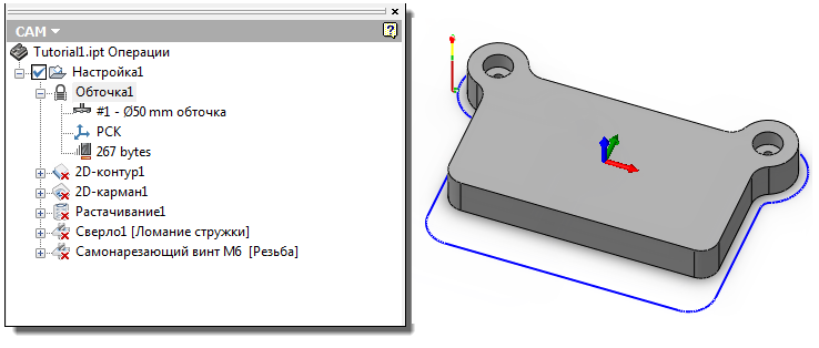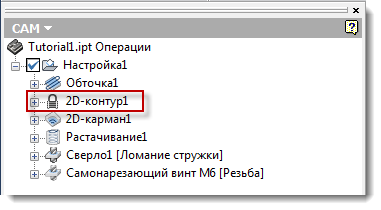 Операция "2D контур1" защищена, на что указывает значок замка
