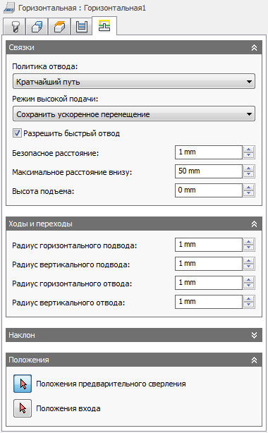 Указание максимального шага понижения на оборот профиля уклона. Этот параметр позволяет ограничить нагрузку на инструмент при выполнении вырезов в полную ширину в процессе создания уклона.