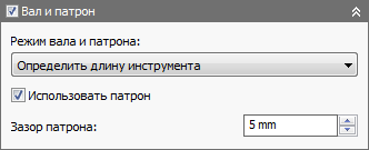 Задание параметра Определить длину инструмента с длиной зазора патрона 5 мм