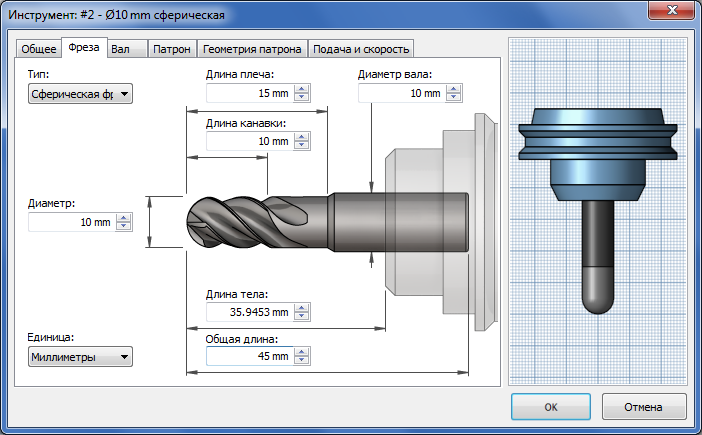При выборе этого параметра Autodesk HSMпозволяет автоматически вычислить минимальную длину инструмента, необходимую для сохранения патрона на расстоянии от детали с заданным значением параметра Клиренс патрона. При расчете траектории перемещения инструмента значение параметра "Длина тела" автоматически обновляется до минимально необходимой длины.