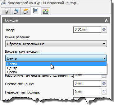 Параметр Многоосный контур позволяет компенсировать инструмент слева и справа от выбранных контуров.
