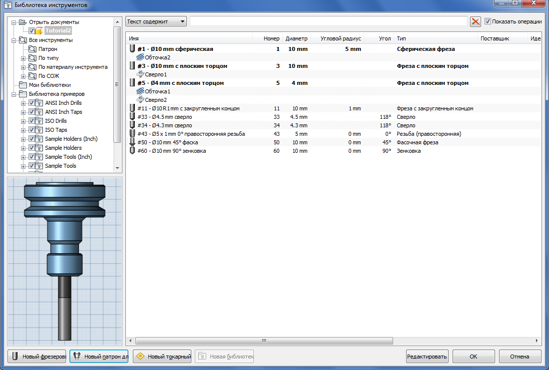 Для последовательного расположения инструментов в библиотеке, их номера можно обновить, щелкнув правой кнопкой мыши библиотеку или список инструментов и выбрав в контекстном меню пункт Ренумерация инструментов.