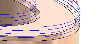 Осевые смещенные проходы используются во многих стратегиях чистовой 3D-обработки для создания нескольких проходов со смещением по оси Z. Они аналогичны выполнению нескольких шагов понижения чистовой обработки в 2D-операциях и используются для удаления фиксированного объема материала с применением нескольких проходов.