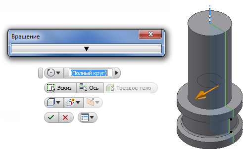 Элемент вращения в детали Inventor, подходящий для создания фасонных фрез