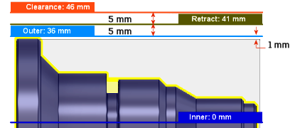 Отображается синим цветом. Параметр задает минимальную радиальную границу области резания. Внутренний радиус определяет максимальную глубину области резания.