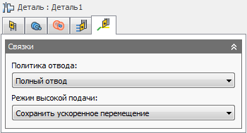 Управление способом отвода инструмента до диаметра просвета после каждого прохода резания или просто отводом на небольшое расстояние от заданного участка обработки. Расстояние определяется значением Безопасное расстояние.