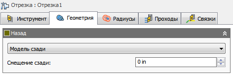 Используется для ограничения траектории путем сужения области. Траектории перемещения инструмента могут ограничиваться определенной областью. Параметр «Режим сзади» позволяет задать опорную точку для определения ограниченной области, а «Смещение» — настроить границу положительного или отрицательного смещения от этой точки. Эти параметры можно использовать, чтобы удлинить траекторию перемещения инструмента за пределы модели для более длинного выреза.