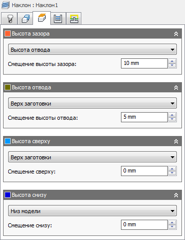 Высота уклона над текущим уровнем заготовки.
