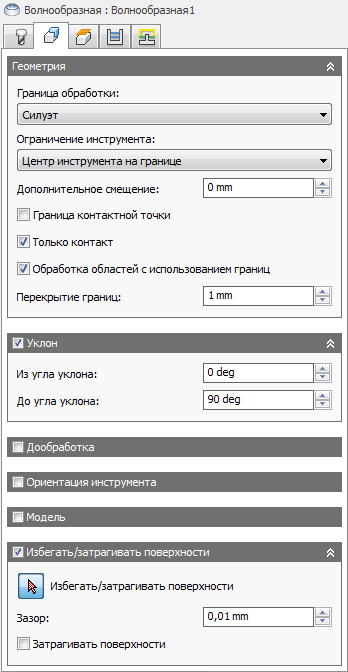 Как и во всех остальных методах чистовой обработки, обработку можно ограничить диапазоном углов контакта.