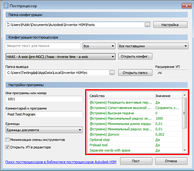 Папка вывода: папка для сохранения новой программы ЧПУ.