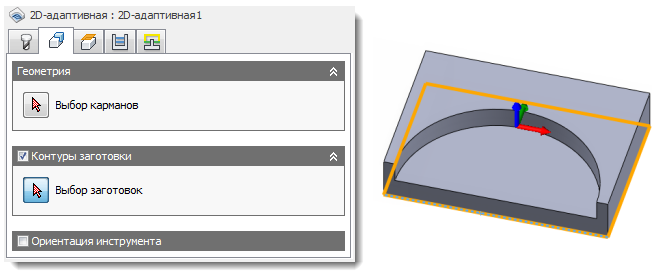 Для обработки открытого 2D-кармана с помощью 2D адаптивной обработки выполните следующие действия.