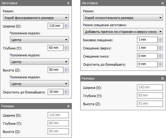 Короб фиксированного размера: создание кубического тела заготовки заданного (фиксированного) размера. Данный параметр установлен по умолчанию.