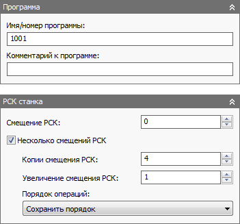 После установки флажка Множеств. смещения РСК можно указать общее количество экземпляров и величину рабочего смещения. Кроме того, можно выбрать порядок дублирующейся траектории перемещения инструмента (по настройке, по операции или по инструменту).