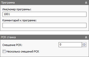 Параметры для последующей обработки, например, имя или номер программы, комментарий к ней и рабочее смещение можно найти на вкладке "Постобработка"