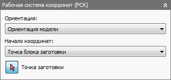 Рабочая система координат (РСК) позволяет указать глобальную систему координат, в которой выводится траектория перемещения инструмента после постобработки. По умолчанию РСК определяется в соответствии с ориентацией модели.