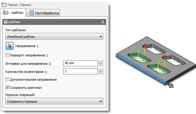- В поле Число экземпляров 1 введите количество повторений для операций, включаемых в массив в этом направлении.