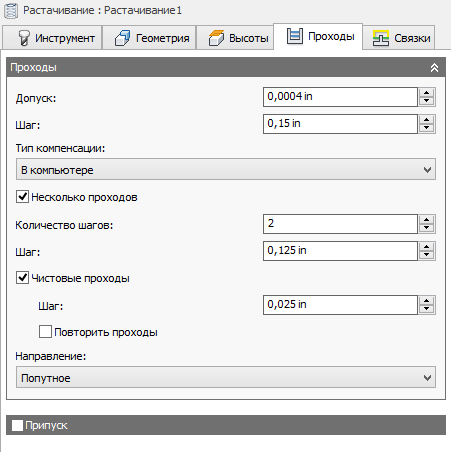 При изменении значения радиального припуска для осевого припуска автоматически задается аналогичное значение. Задать осевой припуск можно и вручную.
