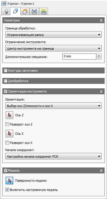 Данный параметр включен по умолчанию. Выбранная в настройке модель дополнительно добавляется к поверхностям модели, выбранным в рамках операции. Если снять этот флажок, то траектория перемещения инструмента создается только на поверхностях, выбранных в рамках операции.