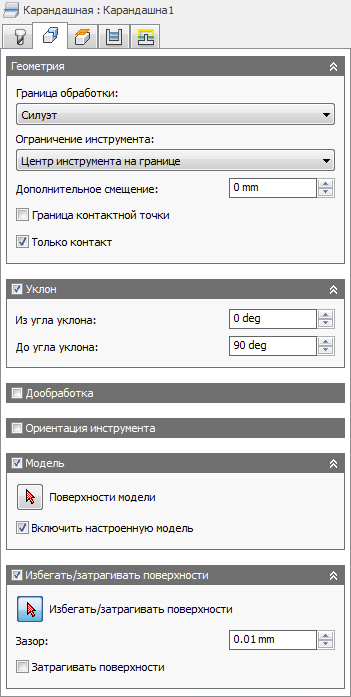 Данный параметр включен по умолчанию. Выбранная в настройке модель дополнительно добавляется к поверхностям модели, выбранным в рамках операции. Если снять этот флажок, то траектория перемещения инструмента создается только на поверхностях, выбранных в рамках операции.