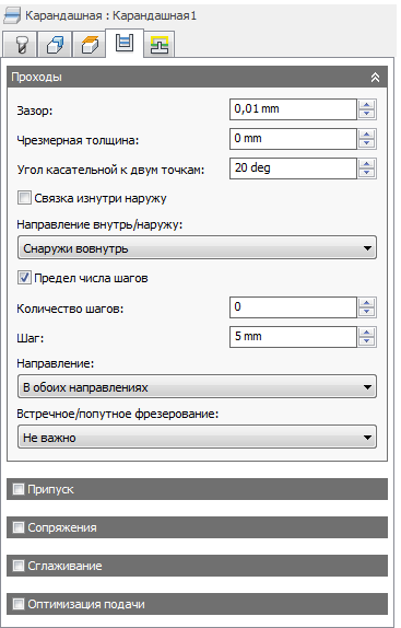 Если параметр отключен, число шагов не ограничивается и в результате выполняется скрытая чистовая карандашная обработка всей поверхности.