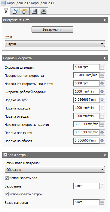Для избежания пересечений вал выбранного инструмента будет использоваться в расчете траектории его перемещения.