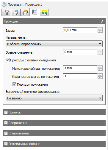 Указание максимального шага понижения между уровнями Z при черновой обработке.