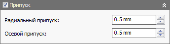 Группа Припуск на вкладке Проходы. При задании значения Радиальный припуск параметр Осевой припуск задается автоматически и получает аналогичное значение.