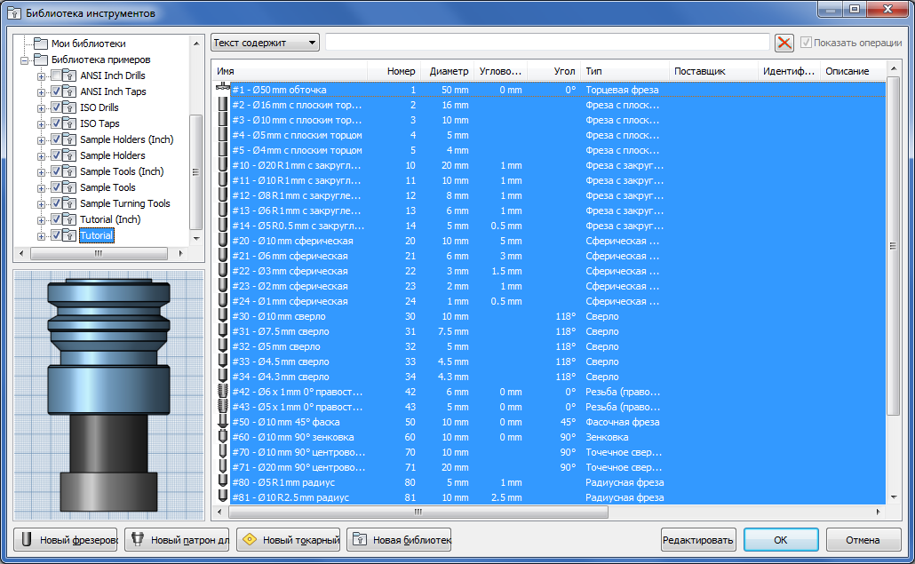 - В диалоговом окне Библиотека инструментов щелкните правой кнопкой мыши и выберите команду Вставить или нажмите комбинацию клавиш CTRL+V. Инструменты из буфера обмена добавляются в текущую библиотеку, но замена существующих инструментов не происходит. Если требуется заменить инструменты, следует вначале удалить их.
